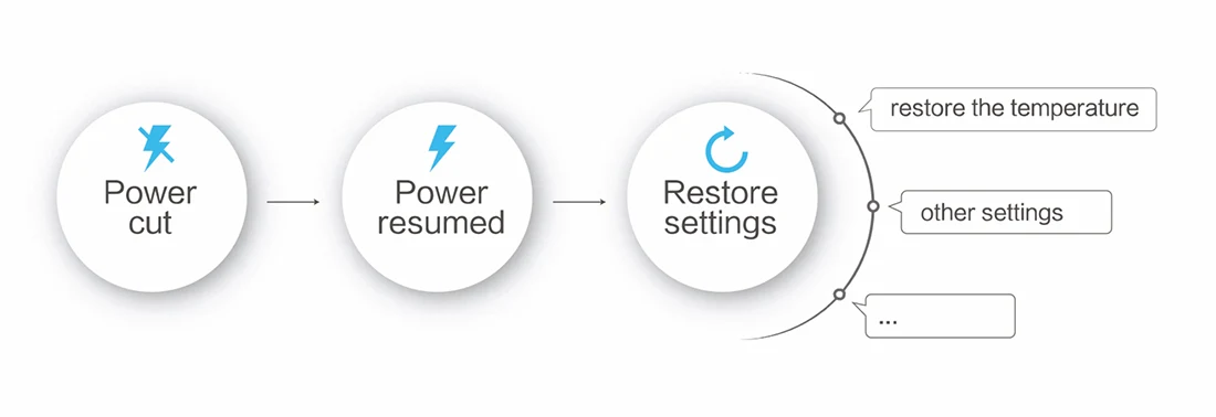 این دستگاه‌های تهویه مطبوع قادرند پس از خاموش شدن یا قطع برق، دما و سایر تنظیمات قبلی را حفظ کرده و هنگام روشن شدن مجدد، آن‌ها را بازیابی کنند.
