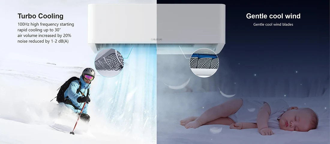 وقتی حالت خواب فعال می‌شود، برای عملکرد بهینه در طول شب، دستگاه با ظرفیت و صدای کمتر شروع به کار می‌کند و دما را به تدریج کاهش یا افزایش می‌دهد تا محیط به دمای مطلوب برسد و خواب راحتی را فراهم کند.