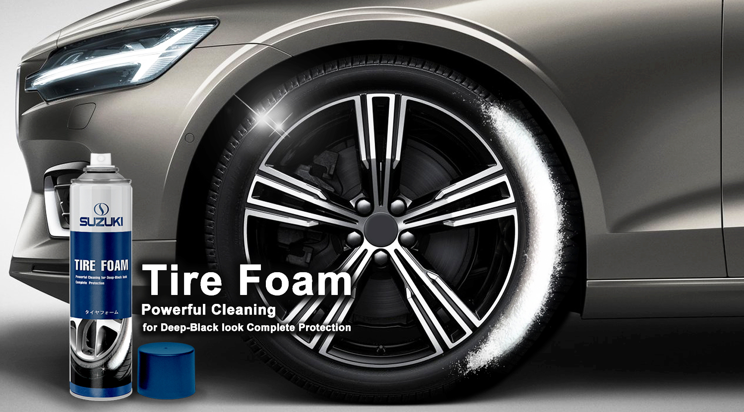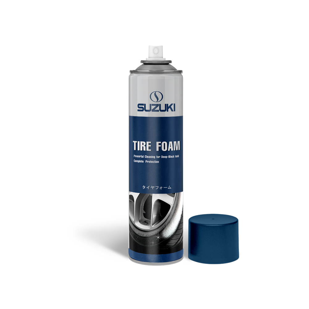 - Suzuki Tire foam spray can completely remove the stains on the tire, in addition to its high cleaning effects. Also, it prevents the tire from cracking and discoloration and gives your car tire a clean and fresh look.