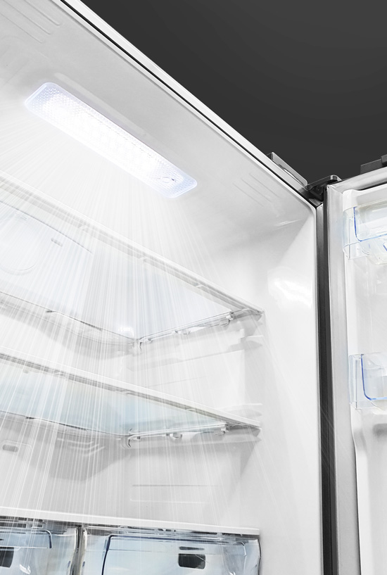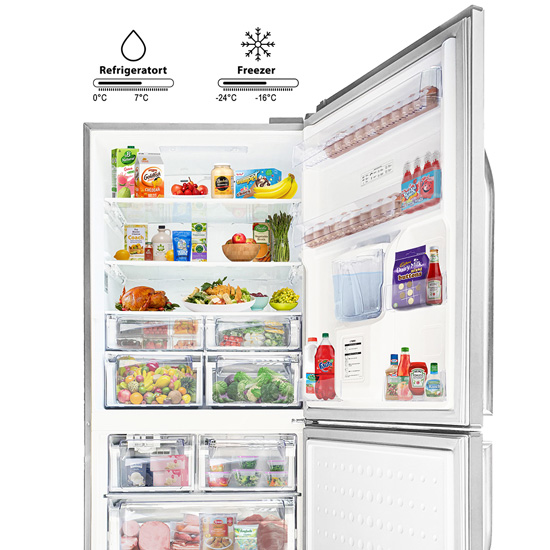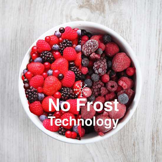 The No Frost technology with a dry air circulation system eliminates moisture from compartments and prevents the frost accumulation on food.