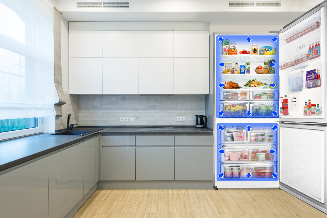 This cooling system enables quicker arrival at optimum temperature and uses less energy. Your food stays fresher with the all-around cooling system, which cools the freezer from corner to corner.