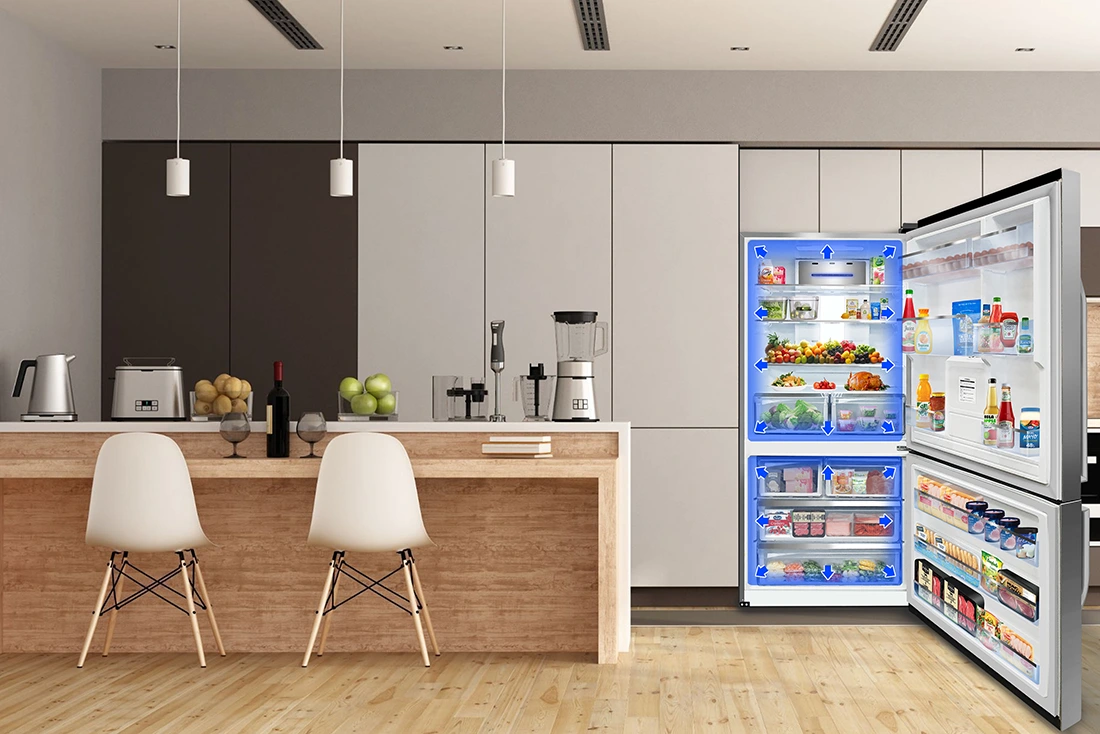 This cooling system enables quicker arrival at optimum temperature and uses less energy. Your food stays fresher with the all-around cooling system, which cools the freezer from corner to corner.