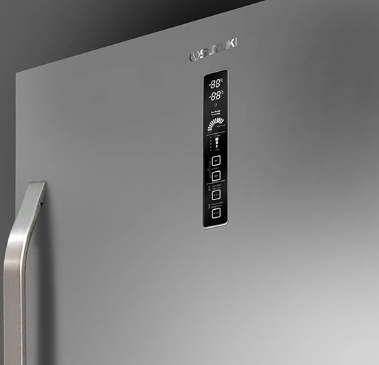 The LED lighting of this Suzuki freezer is brighter and long-lasting. It lights up space inside by saving energy.
