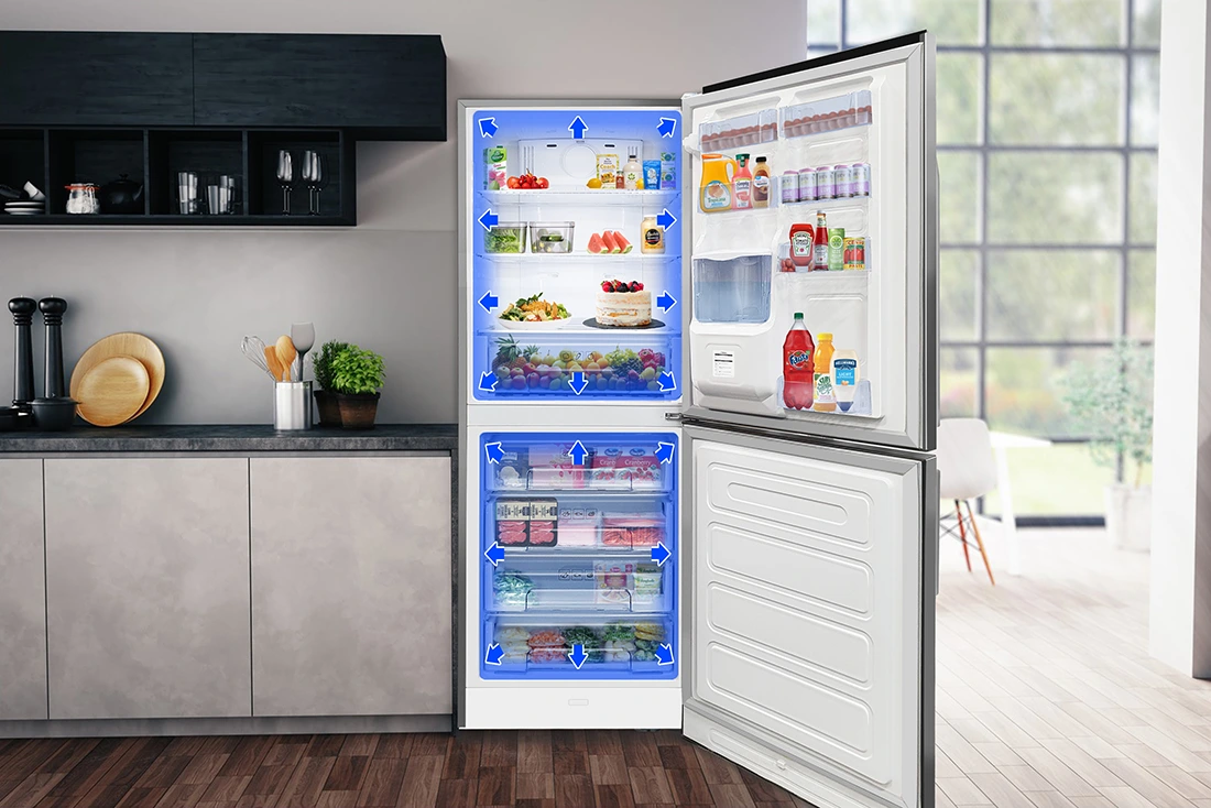 This cooling system enables quicker arrival at optimum temperature and uses less energy. Your food stays fresher with the all-around cooling system, which cools the freezer from corner to corner.
