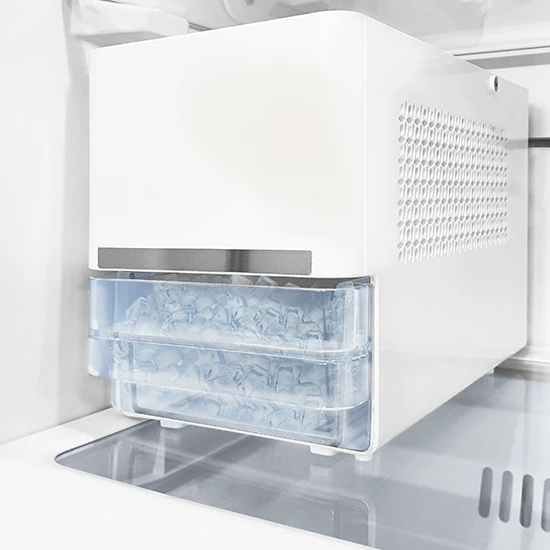 The Automatic ice maker in this Suzuki freezer dispenses ice cubes through a water filter.