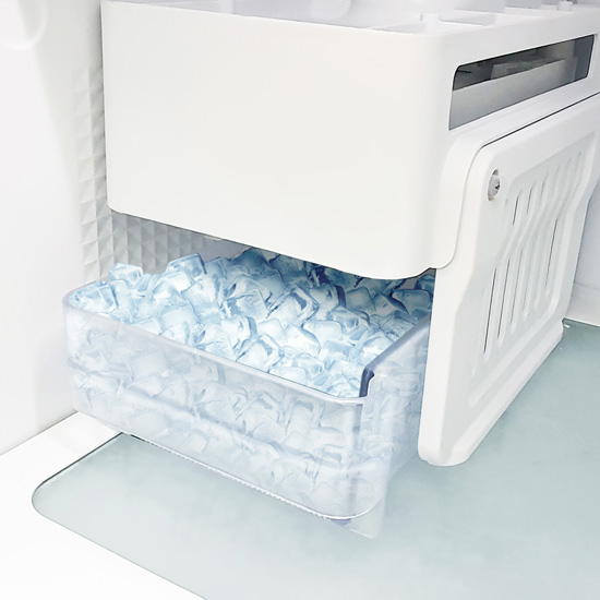 The Automatic ice maker in this Suzuki freezer dispenses ice cubes through a water filter.