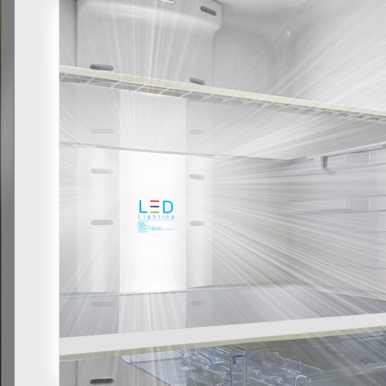 The LED lighting on this Suzuki refrigerator is brighter and long-lasting. It lights up space inside by using less energy