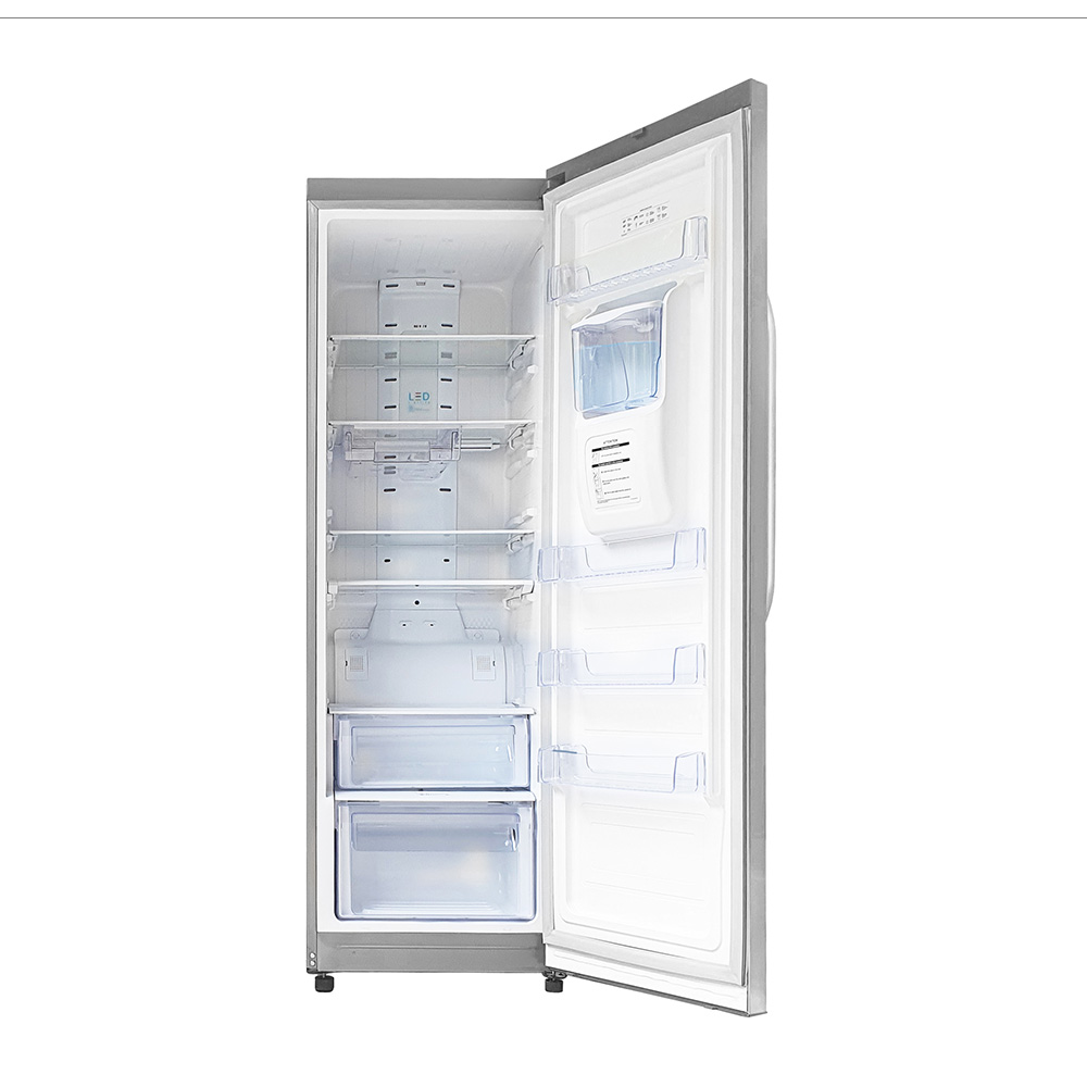 This Suzuki one-door refrigerator with a new design has an increased internal capacity, with 4 removable safety glass shelves, 2 drawers, and a fresh zone.
