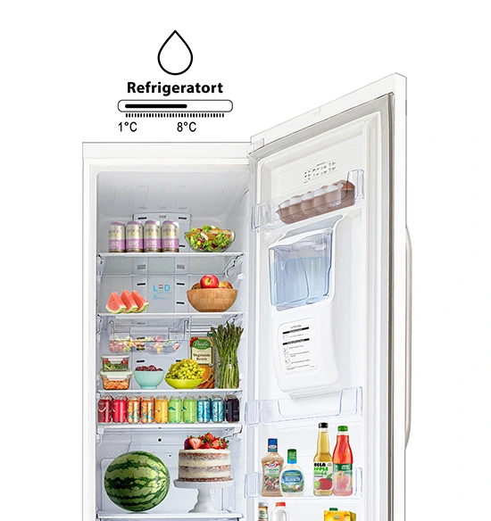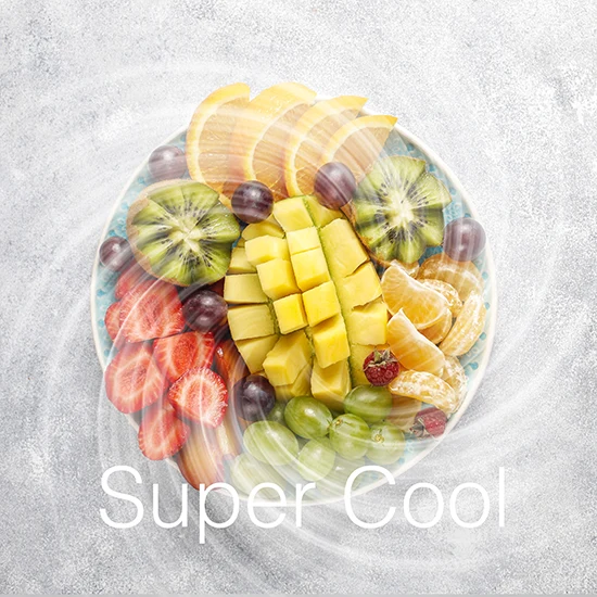 With the Super Cool function, the refrigerator reaches optimum temperature faster and uses less energy. The Power Cool function keeps the food fresh for a long time and quickly cools your groceries.