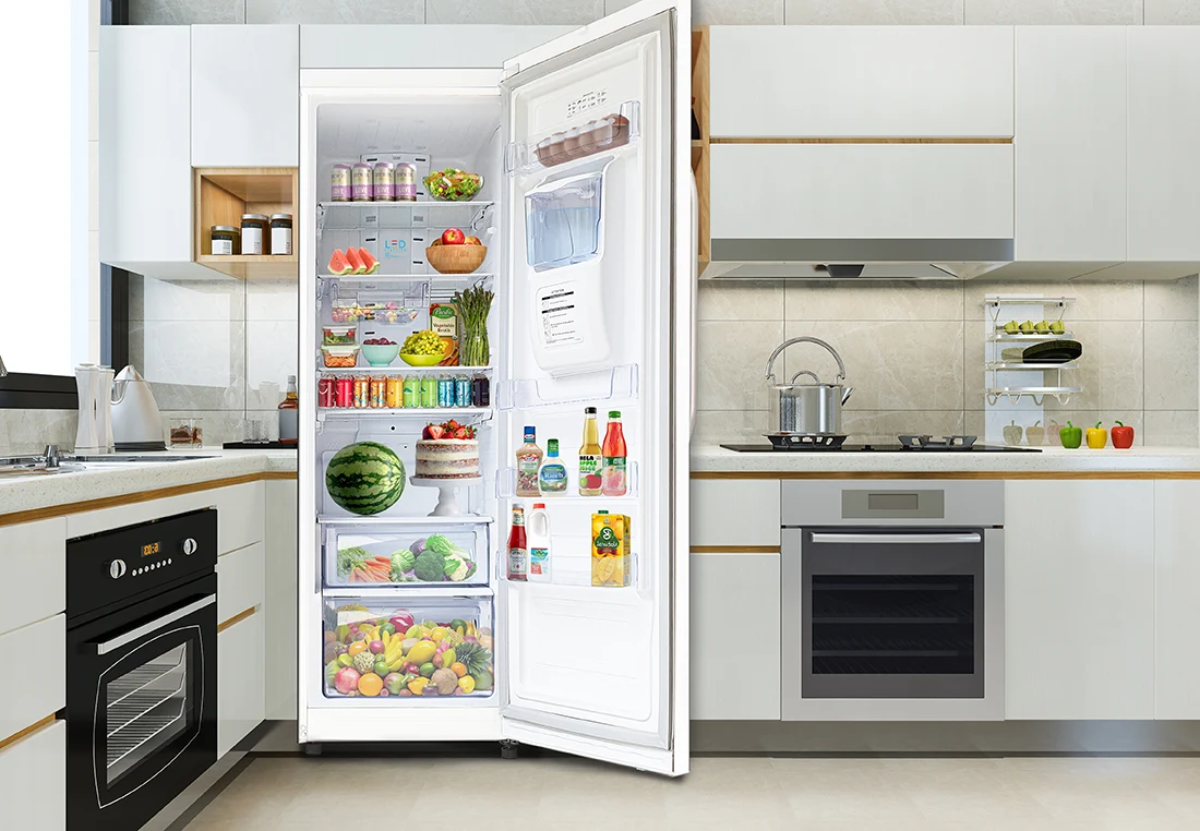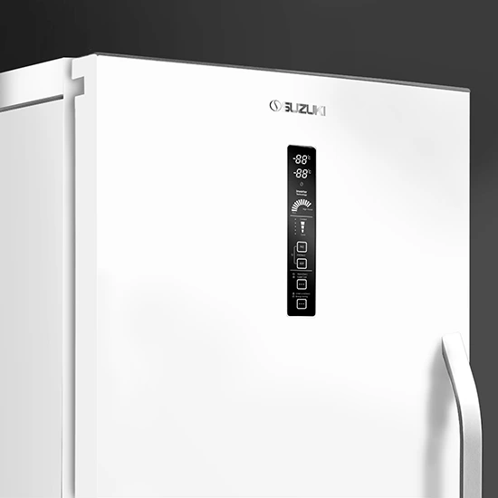 This Suzuki one-door refrigerator with a new design has an increased internal capacity, with 4 removable safety glass shelves, 2 drawers, and a fresh zone.